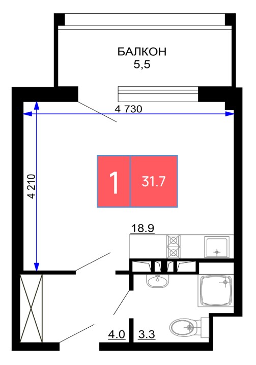 1 комнатная