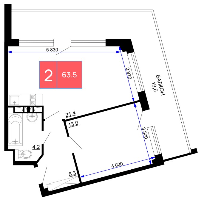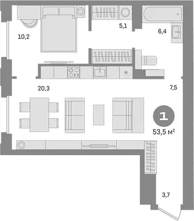 Площадь - 53,5 м²