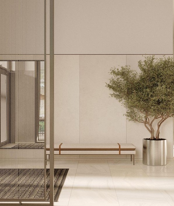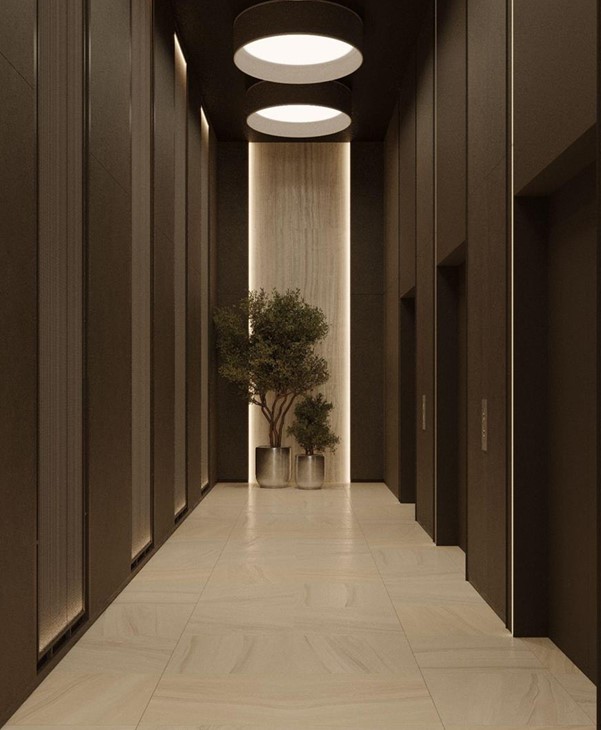Входы в подъезды находятся на уровне земли, без порогов и препятствий. Благодаря панорамному остеклению внутренние помещения будут наполнены естественным светом. Центром притяжения мест общего пользования станут мягкие зоны.