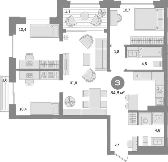 Площадь - 84,8 м²